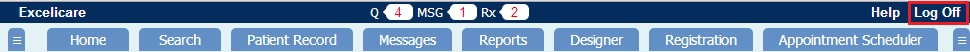 to log off the current user and display the Excelicare ‘Login’ screen.